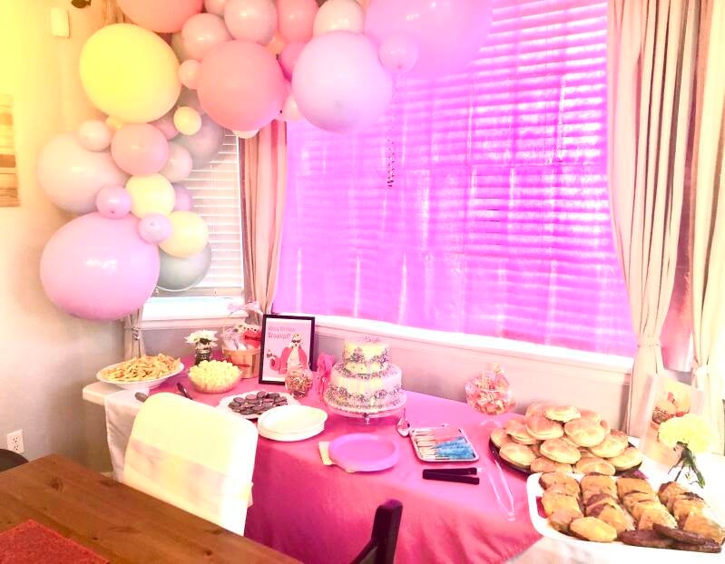 We had everything Taylor Swift! The colors and theme were inspired by the ME Music Video. We had a limousine pick up the party guests and take them to a candy store and then everyone came back to our house for a Taylor Swift Sing-A-Long where they decorated there own microphones, got glitter heart face paint and snow cones and cake!